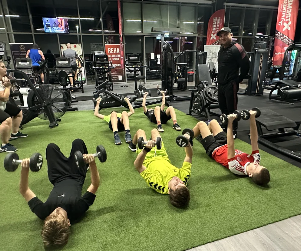 Trener jest bardzo fajny. Ćwiczymy mięśnie i brzuch. Ćwiczymy tak naprawdę wszystko, żeby schudnąć i narobić masę mięśniową.