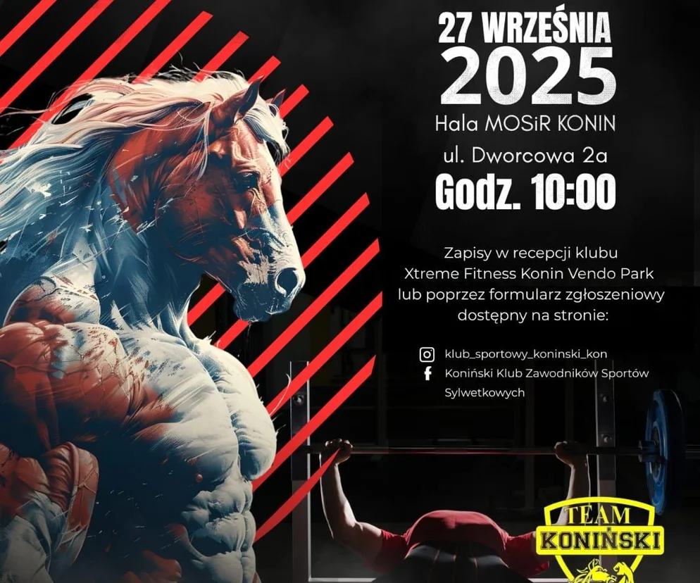 Ogólnopolskie Zawody o Puchar Konińskiego Konia to będzie rywalizacja w wyciskaniu sztangi leżąc. Takiego wydarzenia w mieście jeszcze nie było. To będzie okazja do sprawdzenia swoich umiejętności.