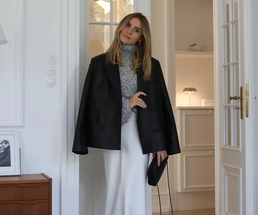 Najlepiej sprawdza się kontrast: miękki, ciepły sweter lub golf i lekka, lejąca satyna. Taki miks daje efekt elegancji, ale bez efektu sztywności. Do tego biżuteria w złotym odcieniu, klasyczne czółenka albo botki – i masz gotowy look, w którym możesz śmiało ruszać na wigilijną kolację.